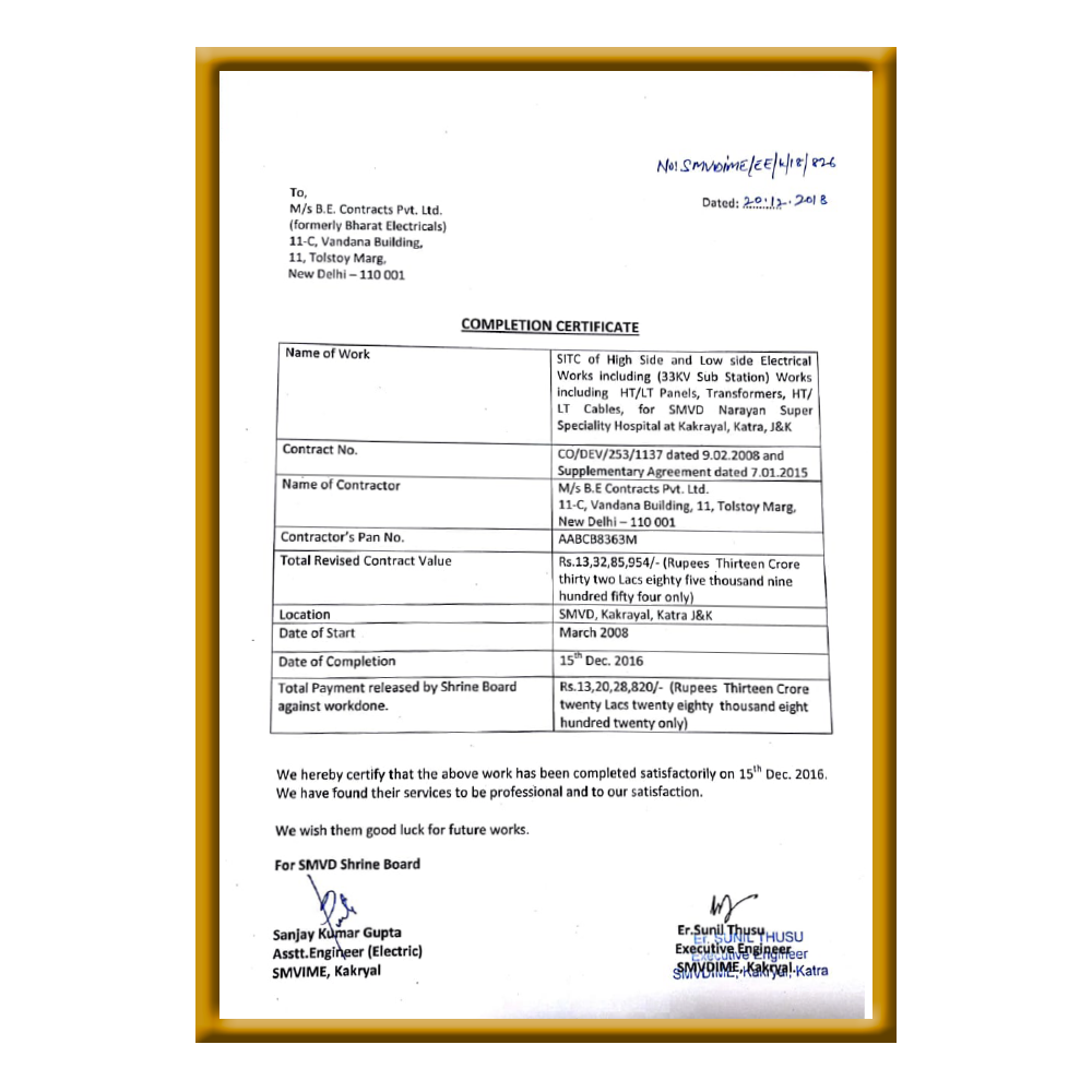We were established in 1953 and were registered with Registrar of firms. We have been performing as Electrical Contractors ever since 1953. The Company Name now changed to B.E. Contracts Pvt. Ltd.